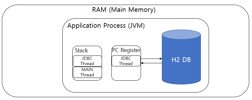 임베디드 모드의 경우, h2가 Java 애플리케이션의 프로세스 안에서 종속적으로 실행된다.